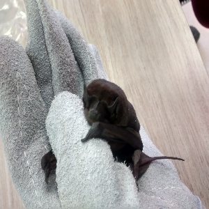 Primeiramente agradecemos vossa participação. Quanto a identificação do seu registro conseguimos chegar até onde sua imagem nos permitiu. Assim, podemos lhe informar que se trata de um morcego insetívoro que pertence à família Vespetilionidae. Já quanto ao gênero e espécie, nós ficamos limitados ao gênero cujo mesmo muito provavelmente seja Eptesicus de acordo com a coloração dos pelos e o tamanho do exemplar. Para uma identificação mais específica seriam necessárias medidas do antebraço e fotografias do rosto. No mais, informamos que seu arquivo está disponível na página "Achei Morcegos" do site www.acheimorcegos.com.br para que você possa compartilhá-la via redes sociais